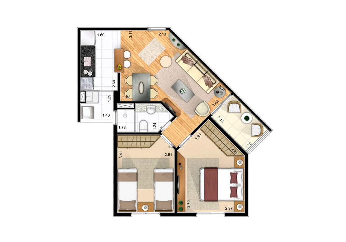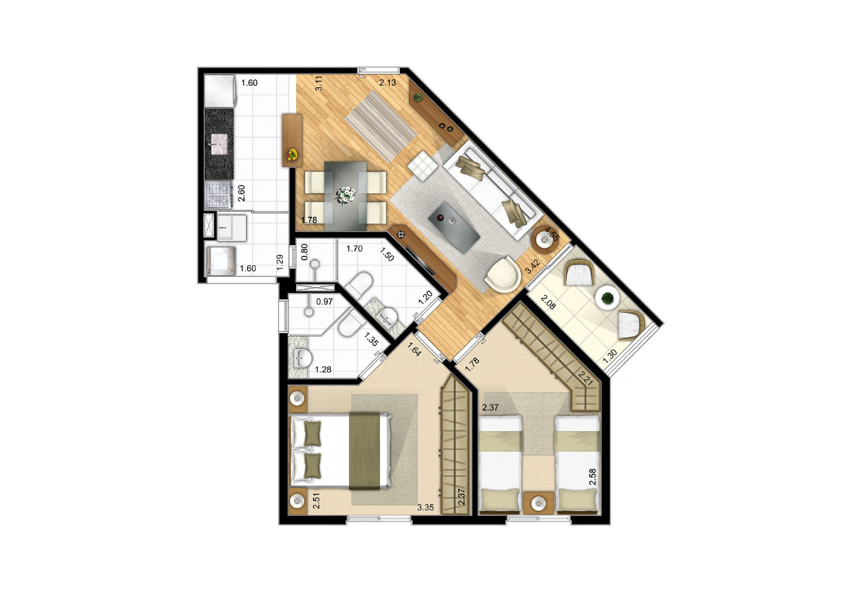 Tipologia: 3 dorms. com suíte (68 m²), 2 dorms. com suíte (57 m²), 2 dorms. (51 m²)