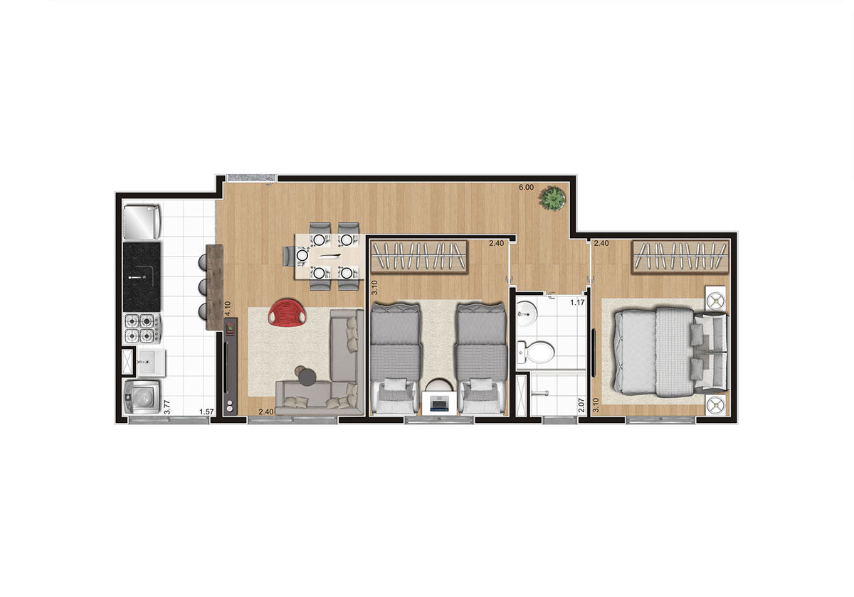 Tipologia: 2 dorms. (42 m² e 43 m²)
